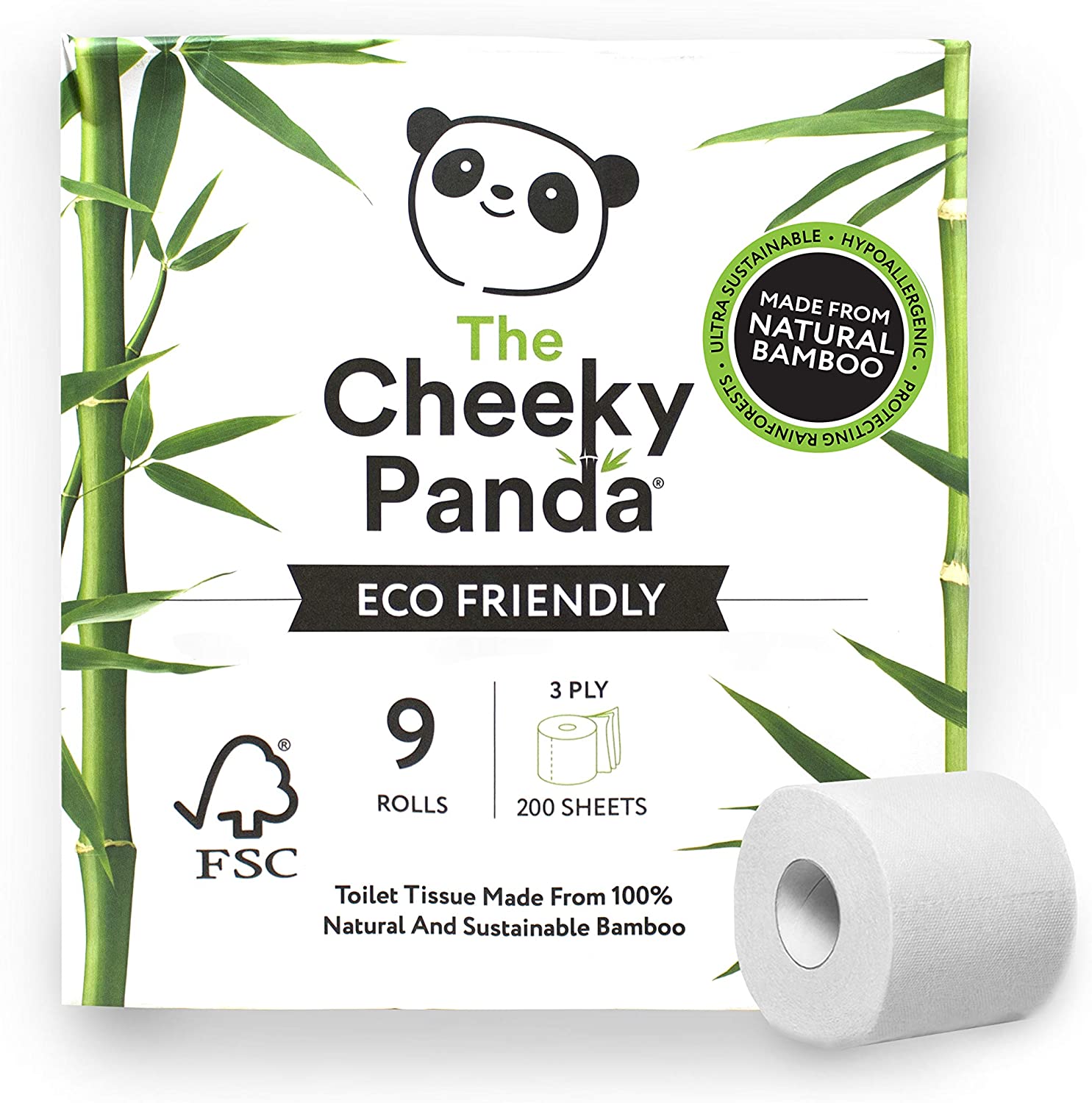 The Cheeky Panda – Bamboo Toilet Tissue Paper | Pack of 9 Rolls (3-Ply, 200 Sheets)