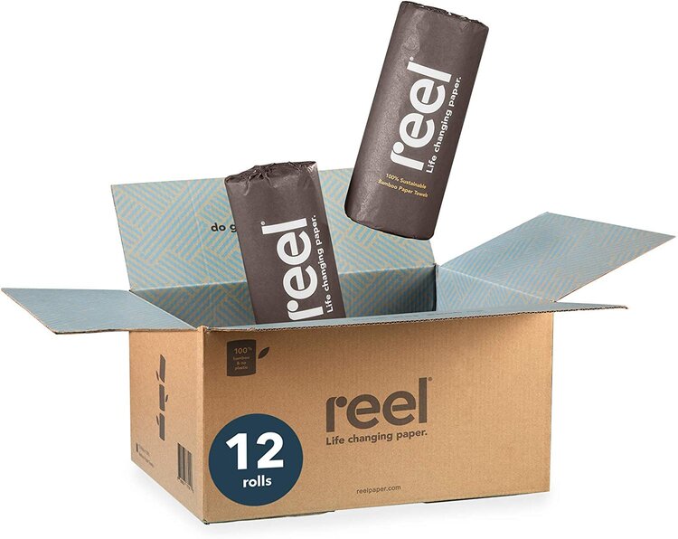 Reel Premium Bamboo Paper Towels- 12 Rolls of Paper Towels - 2-Ply Made From Tree-Free, 100% Bamboo Fibers